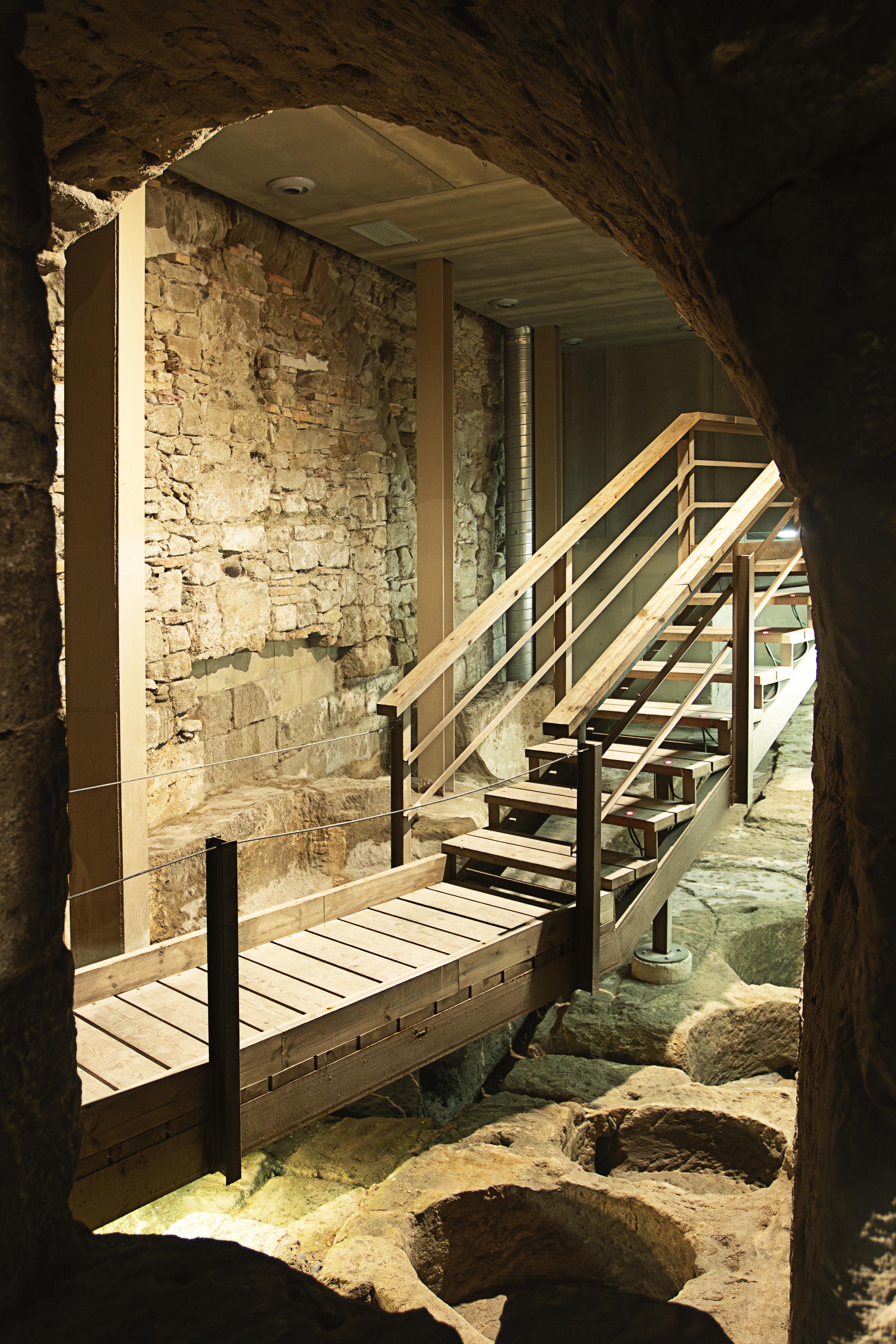 L’atelier était l’espace où les peaux étaient travaillées : une salle allongée avec deux rangées de fosses disposées de part et d’autre d’un canal qui la traversait. Dans ces cuves, les peaux étaient immergées pendant les différentes phases du processus : le chaulage, le tannage et la teinture. Ces opérations nécessitaient un accès constant à de l’eau propre, tant pour laver les peaux que pour éliminer les déchets. C’est pourquoi les tanneries de Lleida ont été construites stratégiquement à proximité des rivières Noguerola et Segre.